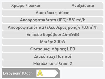 Απορροφητήρας Homer Συρόμενος Turbo 60cm INOX - HUV.780