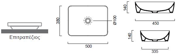 Νιπτήρας μπάνιου Sand color 50 x 38 εκ. 9037-450 cenere