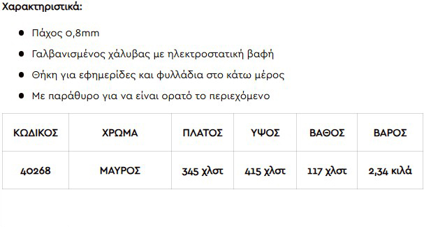 Γραμματοκιβώτιο με Θήκη Εφημερίδων Μαύρο 345x415x117mm FF Group 40268