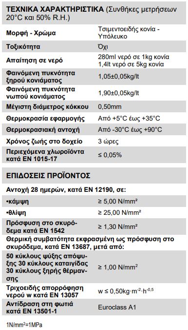 Έχει εξαιρετική πρόσφυση σε μπετόν και σοβά.