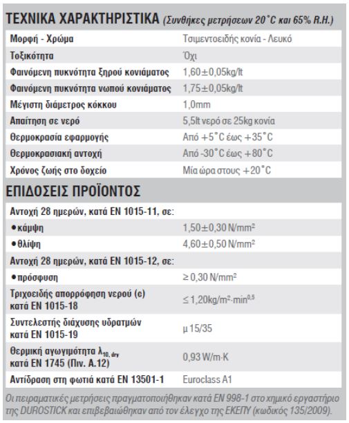 Ταχύπηκτος επισκευαστικός λευκός σοβάς D-32 5kg Durostick
